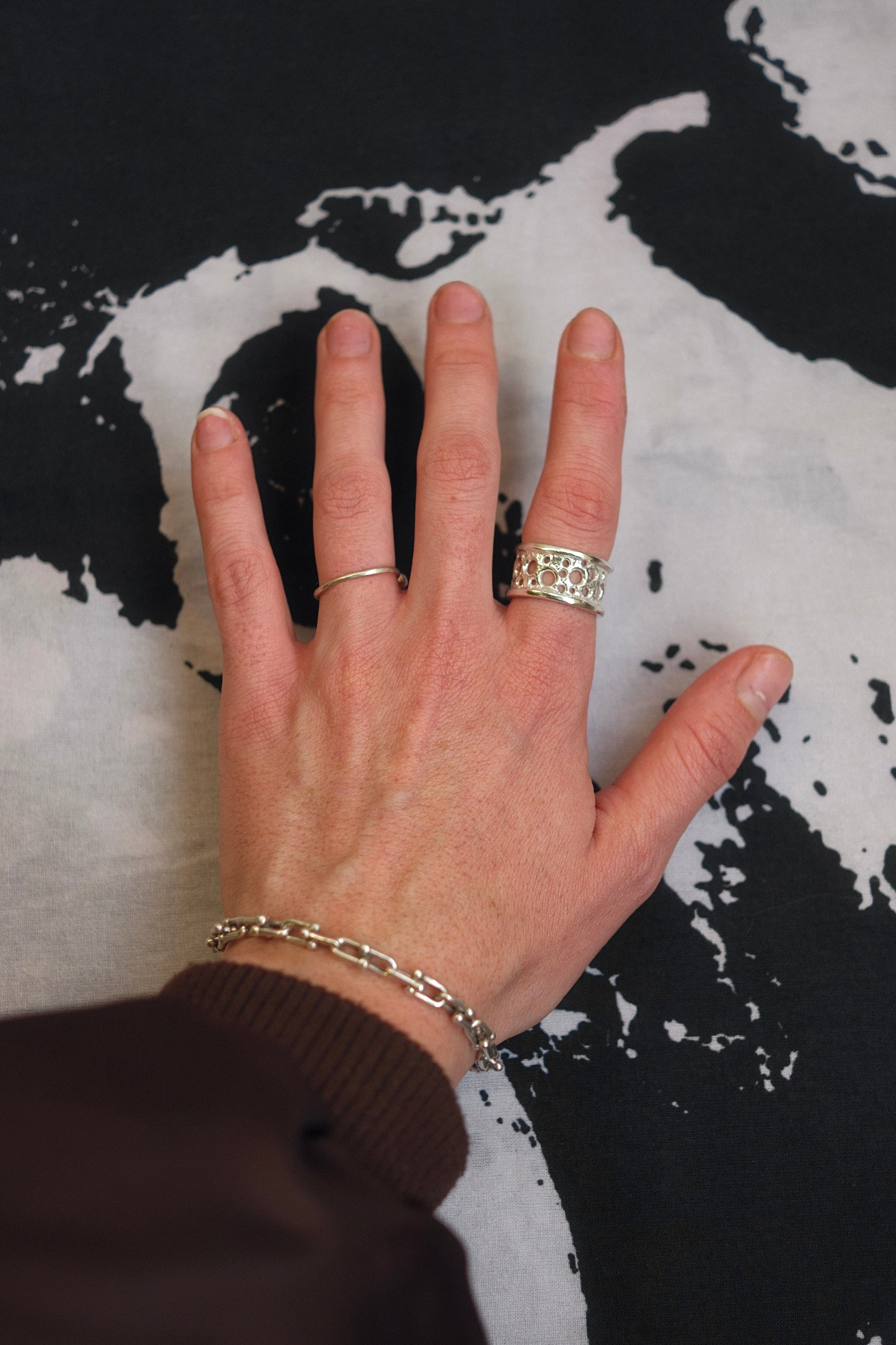 This piece is hand made to order, meaning the ring you end up with will slightly differ in appearance compared to everyone else’s. Each piece is handmade, and due to the casting process the ring will have a unique textures, making them that extra bit special and completely unique.