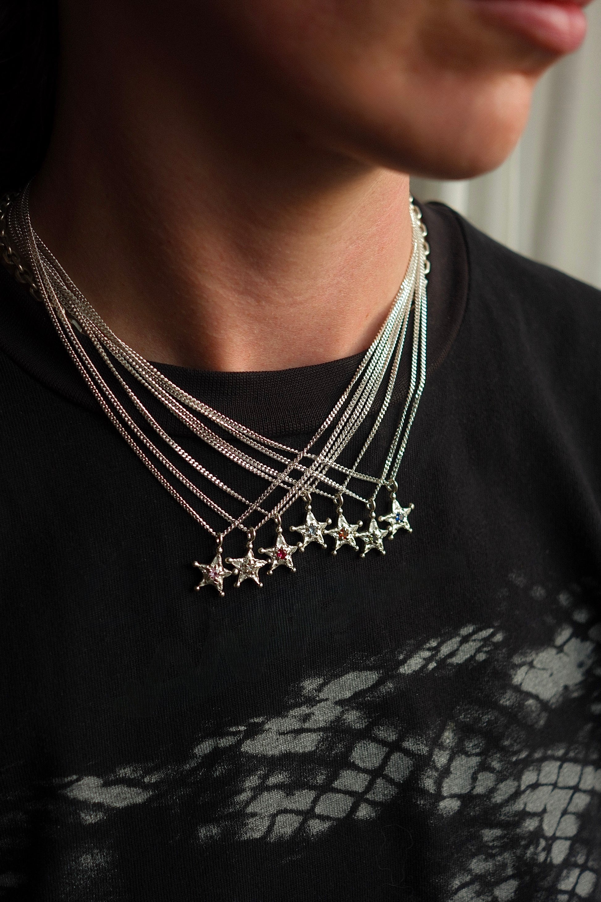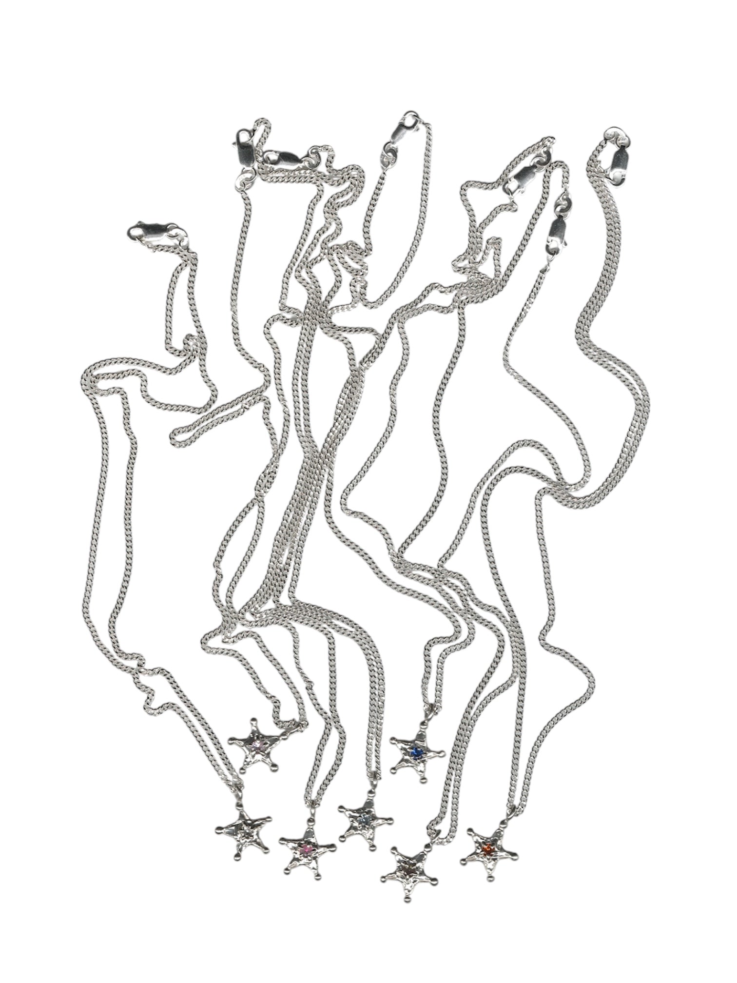 Choose your own gemstone for the iconic Sheriff Star necklace, complete with a 42cm Sterling Silver Curb Chain. It's a true signature piece, and there’s no need to take it off.